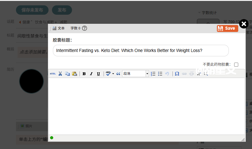 进入个人后台,点击写文章-创建文章,填写标题-选择领域,根据写的领域去选择即可,健康-饮食与减肥-减肥。