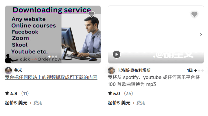 而我们只需要利用一些常见的下载工具,就能帮他们搞定,然后在Fiverr上收取一定的服务费用。