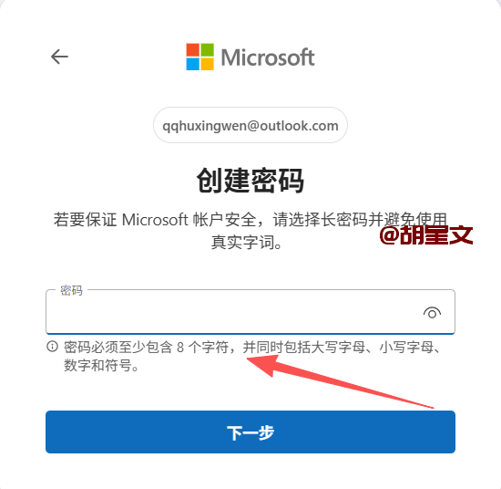 创建密码:设置一个自己熟悉的密码,满足大小写字母+数字的组合即可。