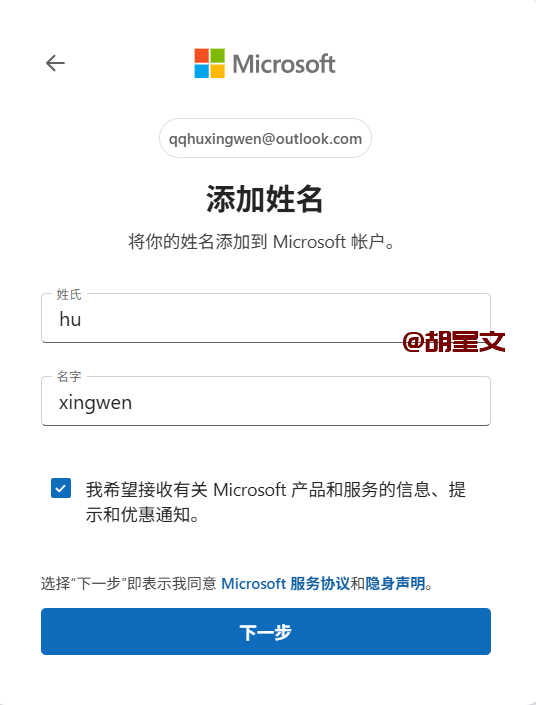 这里在注册Outlook邮箱的时候,胡星文没有遇到填写手机号获取验证码的环境,可能是因为我的IP环境在国外,所以不需要验证手机号。