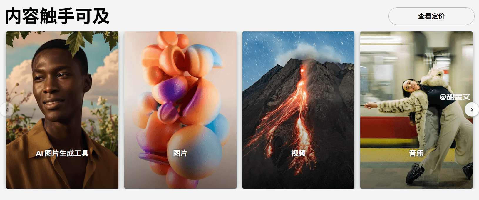 Adobe Stock 的受众是设计师群体,跟 Photoshop/Illustrator 生态天然打通。