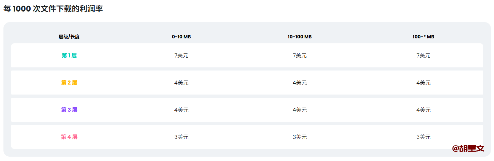按下载次数付费,每1000次下载能赚1.8~14.5 美元,不区分国家地区,只区分文件大小,文件越大,千次下载收益越高。