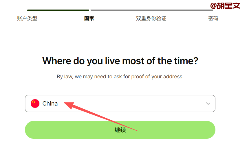 国家就选择中国即可,下一步会给一个中国地区的账号使用说明,有那些功能,点击继续即可。