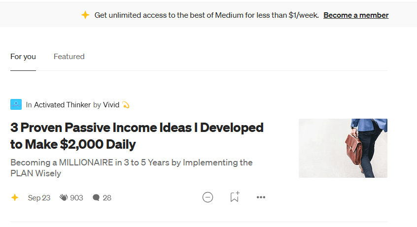 而且像Medium这个平台,如果不订阅会员,每天只能免费阅读三篇,这种作者设置成会员可阅读的文章,你想看第四篇那就需要开通会员了,并且Medium的网站权重非常高,月活用户也很多,很多作者不仅仅是在上面发文章赚钱,也会利用这个平台来做联盟营销。
